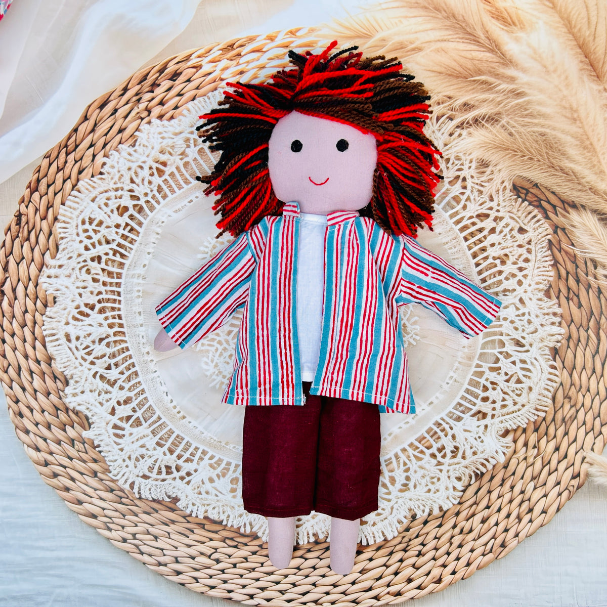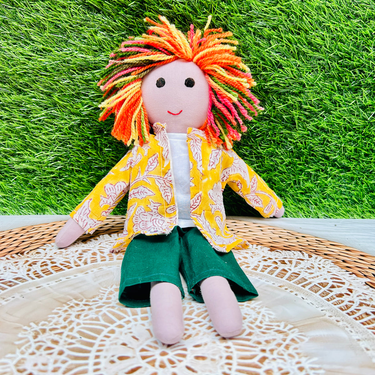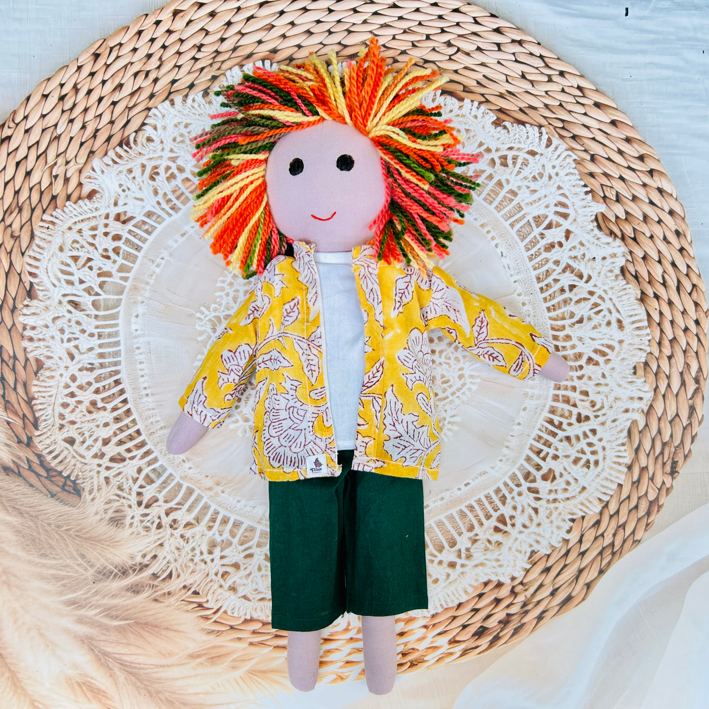 Crafted using Pre- post-production textile waste & Dead Stock that would otherwise end up in landfills — making each doll a small but powerful step toward a greener planet.