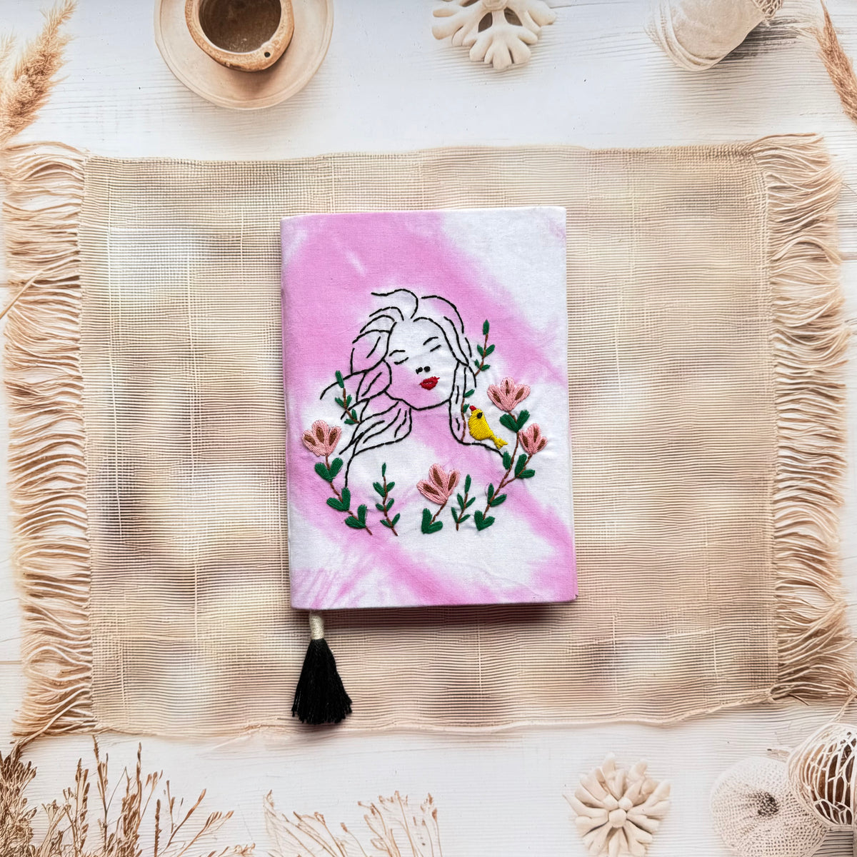 Unruled Embroidery Diary - Large ( 8*6 ) - pink
